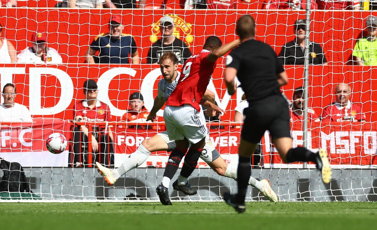 Fernandes mở bóng từ trung lộ cho Antony xâm nhập vòng cấm địa, hoàn toàn có thể dứt điểm nhưng tiền vệ người Brazil lại căng ngang để loại bỏ thủ thành đội khách, tạo cơ hội ghi bàn cho Martial. Chỉ còn một hậu vệ đứng chắn trước cầu môn rộng thênh thang, Martial dễ dàng sút bóng vào lưới mở tỉ số.