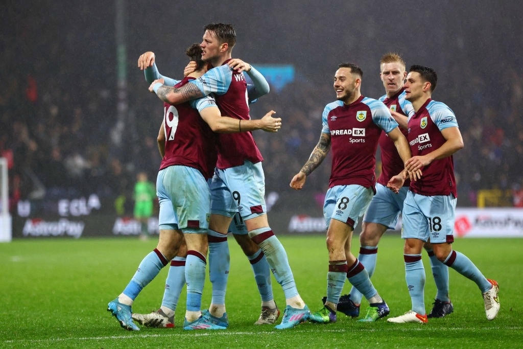 Cầu thủ Burnley ăn mừng sau khi ghi bàn vào lưới Man Utd.