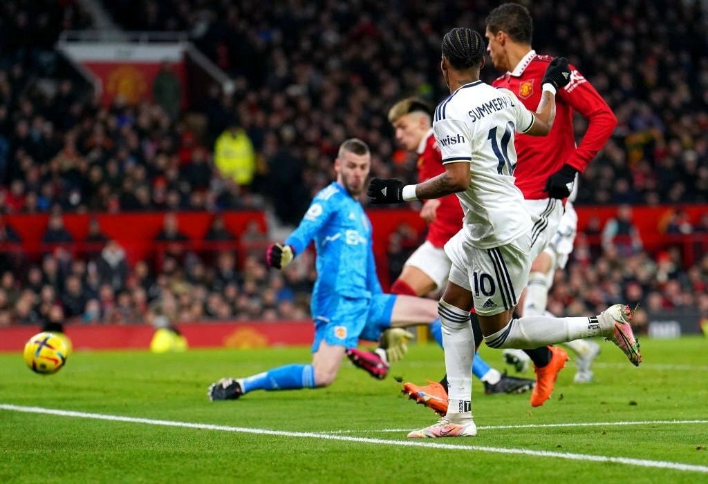 Sau tiếng còi khai cuộc, khi đội chủ nhà còn chưa ổn định đội hình, Leeds đã tạo được bất ngờ. Phút 1, các cầu thủ đội khách có màn triển khai tấn công nhuyễn để Gnonto tung ra cú sút chìm từ trước vòng cấm địa đưa bóng đi vào góc trái cầu môn. Pha dứt điểm đủ cả lực và độ hiểm của cầu thủ chạy cánh bên phía Leeds khiến De Gea chịu khuất phục.