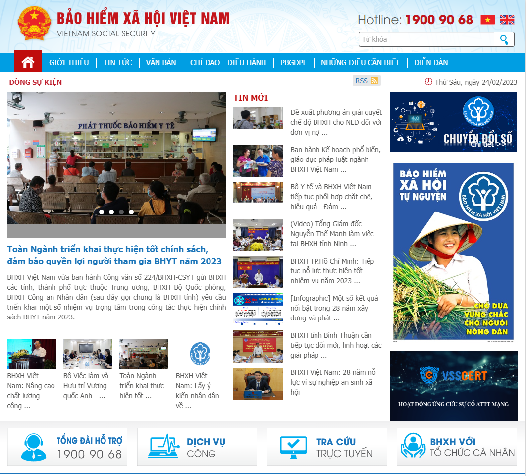 Thông tin điện tử BHXH Việt Nam (https://baohiemxahoi.gov.vn/); Các trang mạng xã hội của BHXH Việt Nam; Fanpage Facebook(https://www.facebook.com/baohiemxahoi.gov.vn), Zalo Official Account: Bảo hiểm xã hội Việt Nam; Ứng dụng “VssID - Bảo hiểm xã hội số”. Và Tổng đài hỗ trợ, chăm sóc khách hàng - hotline: 1900.9068