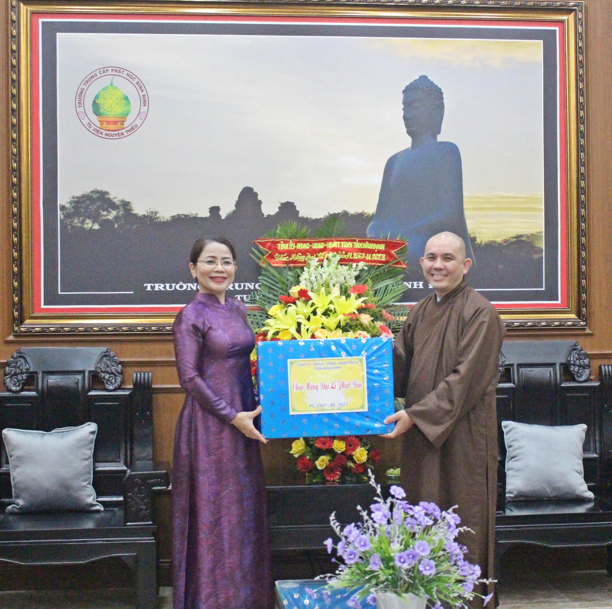 Nhân dịp Đại lễ Phật đản Phật lịch 2567 năm 2023, ngày 30/5, Uỷ ban MTTQ Việt Nam tỉnh Bình Định, do bà Nguyễn Thị Phong Vũ, Trưởng ban Dân vận Tỉnh ủy, Chủ tịch Ủy ban MTTQ Việt Nam tỉnh Bình Định, dẫn đầu đoàn công tác đã đến thăm, chúc mừng Trường Trung cấp Phật học Bình Định.