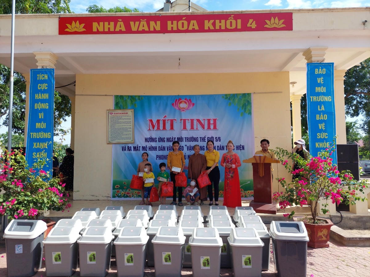 Tại buổi mít tinh, Ni sư Thích Nữ Diệu Nhẫn, Phó trưởng Ban trị sự GHPG tỉnh Nghệ An, Trụ trì chùa Cần Linh đã trao 300 lá cờ Tổ quốc cho ngư dân, 5 triệu đồng cho Hội khuyến học phường Nghi Thu và 10 suất quà (mỗi suất 500 ngàn/cháu) cho học sinh nghèo học giỏi, kẹo bánh để tổ chức ngày 1/6.