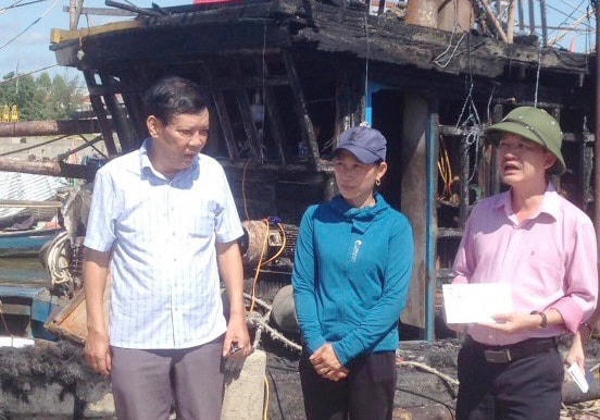 Đến thăm các gia đình ngư dân, ông Trần Quang Minh, Phó Chủ tịch Ủy ban MTTQ tỉnh Quảng Bình đã chia sẻ những thiệt hại về tài sản của ngư dân khi có 3 chiếc tàu cá bị cháy hoàn toàn, 1 chiếc bị cháy 1 phần, ước thiệt hại hơn 2 tỷ đồng.