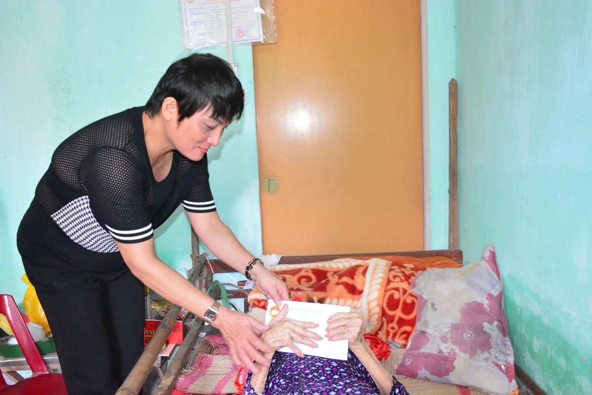 Theo đó đoàn công tác đã đến thăm Mẹ VNAH Nguyễn Thị Bạn (96 tuổi) ở thôn Đông, xã Tịnh Sơn và Mẹ Trương Thị Khanh (95 tuổi) ở thôn Bình Nam, xã Tịnh Bình. Số tiền phụng dưỡng mỗi Mẹ VNAH 3 tháng (từ 4/2022 đến 6/2022) 6 triệu đồng.
