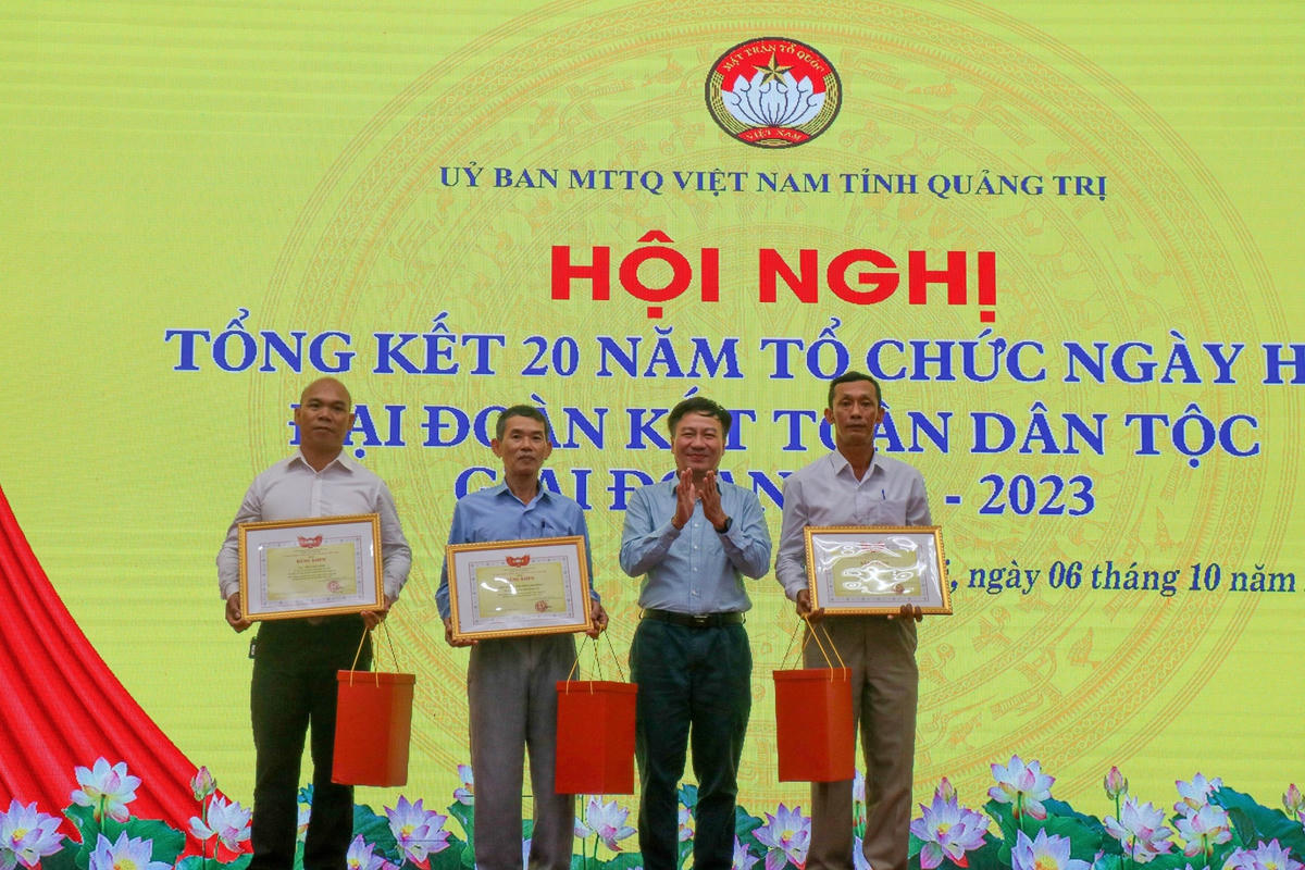 Dịp này, 2 tập thể và 1 cá nhân tại tỉnh Quảng Trị được nhận Bằng khen của Ủy ban Trung ương MTTQ Việt Nam, 20 tập thể và 30 cá nhân được nhận Bằng khen của UBND tỉnh Quảng Trị vì đã có thành tích xuất sắc trong 20 năm tổ chức Ngày hội giai đoạn 2003 - 2023.