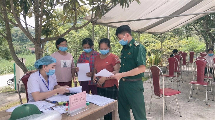 Bên cạnh việc tổ chức hỗ trợ lương thực, thực phẩm, đồ dùng thiết yếu, nhiều tỉnh, thành phố đã đẩy mạnh việc tiêm vaccine cho đồng bào DTTS. Tại tỉnh Cao Bằng, từ ngày 20/7 đến ngày 30/7/2021, UBND, MTTQ xã Thị Hoa (huyện Hạ Lang) đã tổ chức tiêm vaccine phòng Covid-19 cho bà con dân tộc Tày, Nùng sinh sống tại khu vực biên giới của xã.