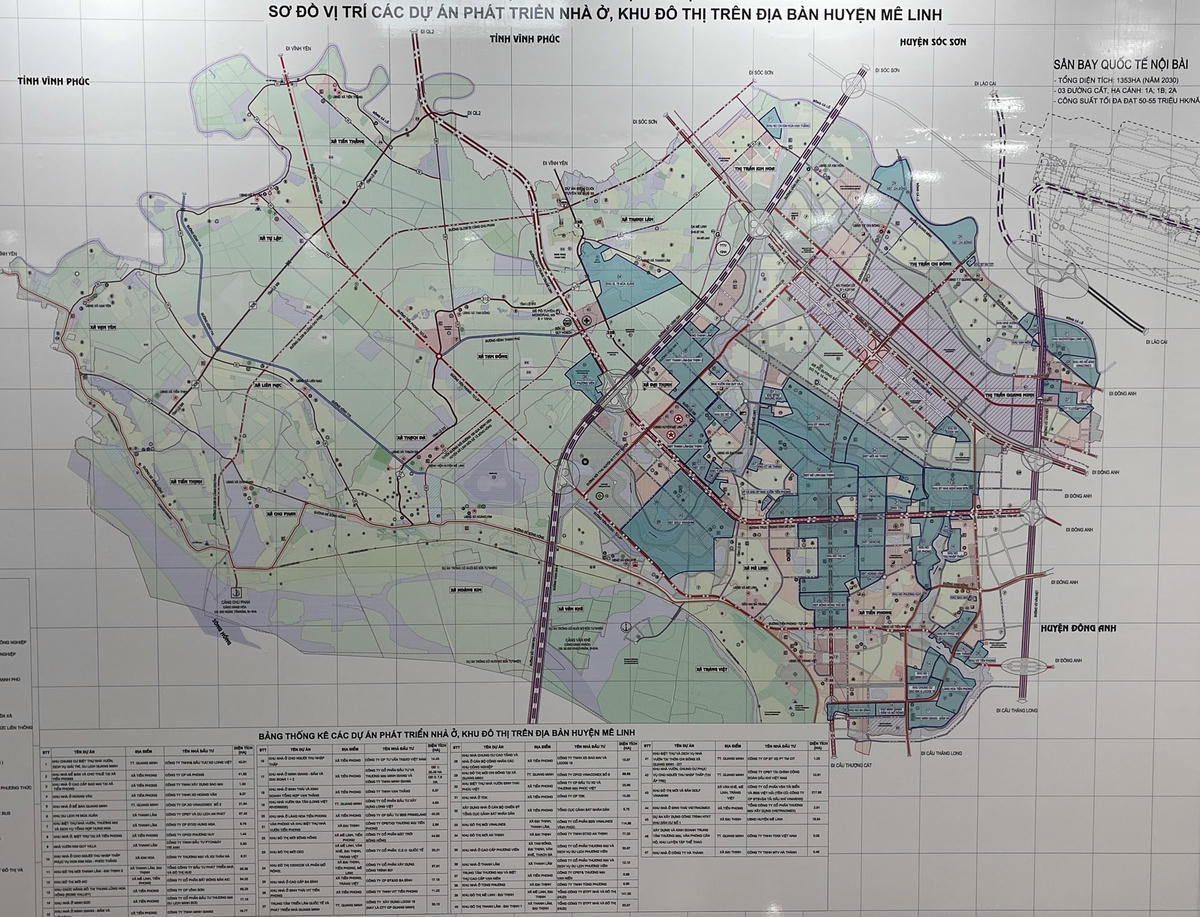 Sơ đồ các Dự án phát triển nhà ở, khu đô thị trên địa bàn huyện Mê Linh đã đắp chiếu hơn 10 năm