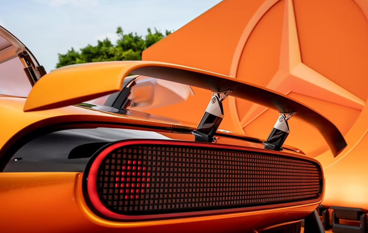 Nó cũng có thân xe khí động học siêu phẳng và cửa cánh chim mở lên trên ở hai bên – giống như DeLorean trong bộ phim khoa học viễn tưởng kinh điển “Back to the Future” năm 1985 của Mỹ.
