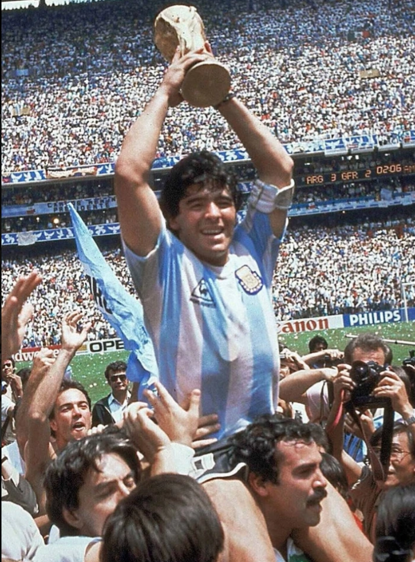 Cầu thủ Lionel Messi tái hiện lại tư thế mang tính biểu tượng của cựu danh thủ Diego Maradona từ năm 1986 khi anh thực hiện giấc mơ cả đời của mình với chức vô địch World Cup 2022.