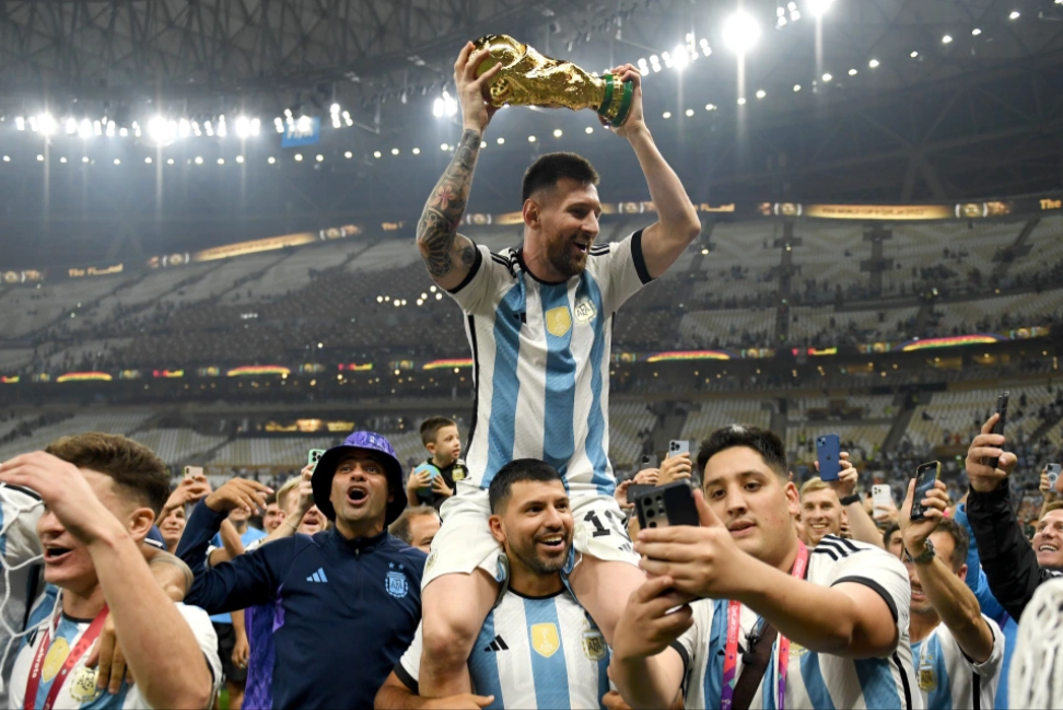 Chiến thắng đã dẫn đến những màn ăn mừng tập thể, trong đó các đồng đội nâng cầu thủ Messi lên và anh giơ cao chiếc Cup trên không trung.