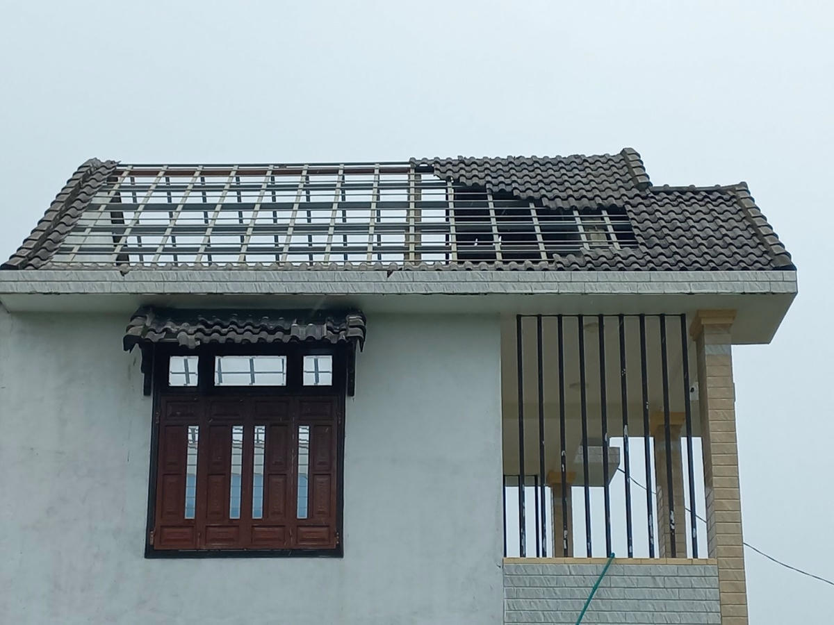 Bà Nguyễn Thị Hồng (trú tại thôn Cổ Bưu) cho biết, gia đình bà vừa vào ở ngôi nhà mới được 2 ngày thì bị bão số 4 quét qua làm hư hỏng nặng. “Vào khoảng rạng sáng 28/9, một luồng gió xoáy bất ngờ quét qua khiến nhiều tấm ngói và một mái tôn trước sân nhà bị cuốn bay hàng trăm mét. Sáng nay, các lực lượng chức năng đã về để hỗ trợ gia đình lợp lại mái ngói”, bà Hồng thông tin.