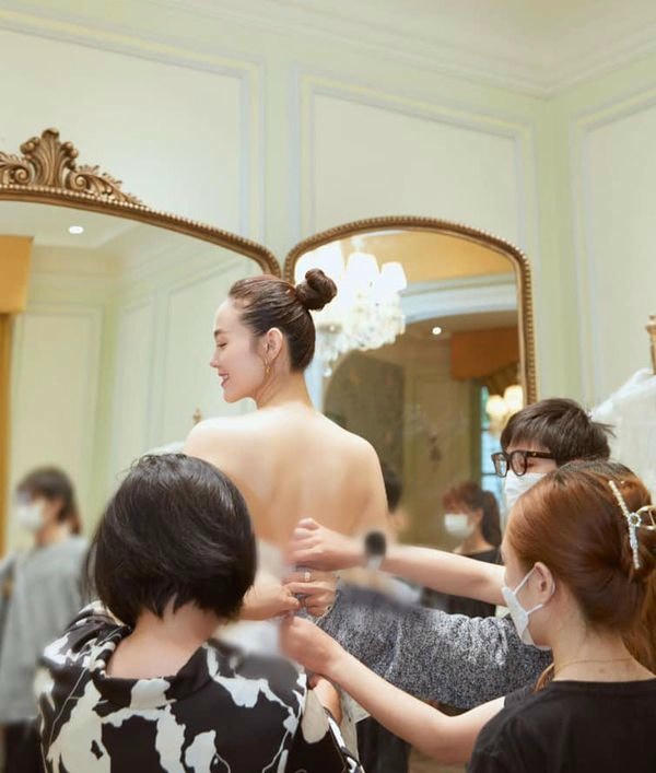 Theo ca sĩ, việc lựa váy cưới không đơn giản nhưng thú vị và đem lại niềm hạnh phúc. Cô nói: "Tôi không cần đồ có quá nhiều chi tiết hoặc lộng lẫy mà phải tôn nét đẹp cô dâu".