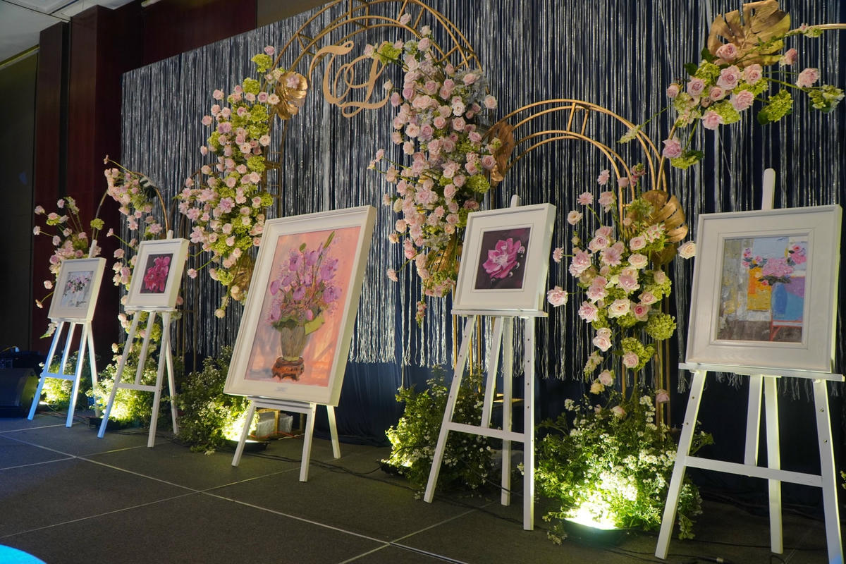 Suốt hai năm đại dịch Covid-19 hoành hành, nhà sưu tập Thúy Anh đã tham gia một cách thầm lặng vào nhiều chương trình đấu giá tranh ủng hộ các bệnh viện tuyến đầu chống dịch. Trong tổng số 18 bức tranh lần này, có hơn một nửa là những bức tranh vẽ về hoa được chị sưu tập thông qua hoạt động nhân ái.
