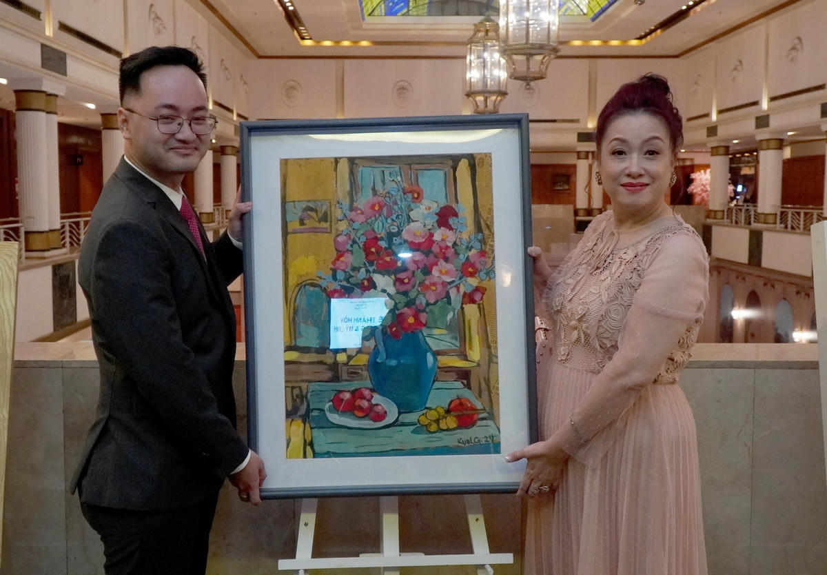Dù cặp uyên ương chưa sưu tập tranh bao giờ và lại đang hoạt động ở những lĩnh vực khác, nhưng trước tình cảm của mẹ đã đón nhận món quà với niềm xúc động.