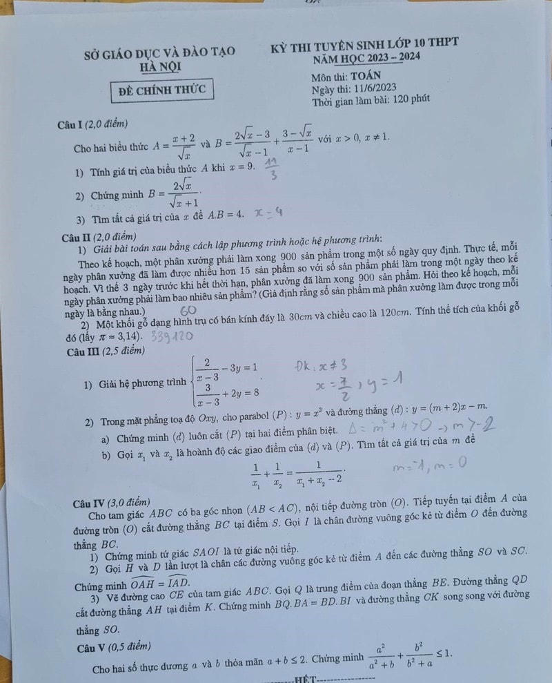 Trong sáng nay (11/6) hơn 100 ngàn thí sinh Hà Nội đã hoàn thành môn thi Toán (120 phút)- môn thi cuối cùng để tuyển sinh vào lớp 10 trung học phổ thông (THPT) công lập không chuyên năm học 2023 – 2024.