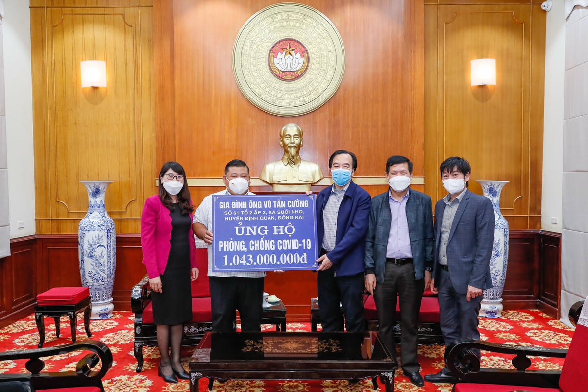 Chiều 6/1, tại Hà Nội, Phó Chủ tịch UBTƯ MTTQ Việt Nam Ngô Sách Thực đã tiếp nhận số tiền 1,043 tỷ đồng ủng hộ công tác phòng chống dịch Covid-19 từ gia đình ông Vũ Tấn Cường cư trú tại ấp 2, xã Suối Nho, huyện Định Quán, tỉnh Đồng Nai.