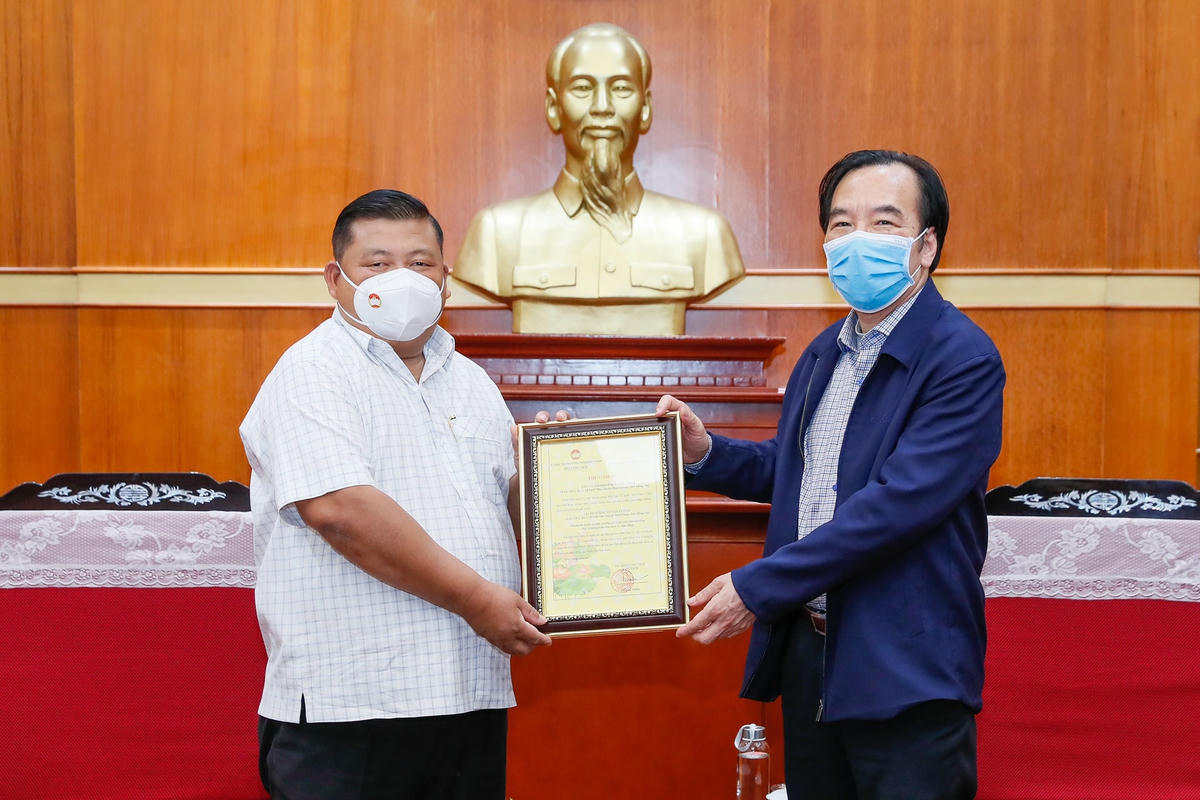 Thay mặt Ban Thường trực UBTƯ MTTQ Việt Nam, Phó Chủ tịch Ngô Sách Thực trân trọng cảm ơn tấm lòng hảo tâm của gia đình ông Vũ Tấn Cường đã đồng hành, ủng hộ nguồn lực để cùng với Đảng, Nhà nước đẩy lùi sự lây lan của dịch bệnh.