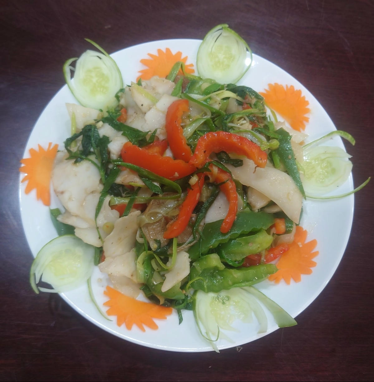 Tới bước chế biến mới thật là nghệ thuật. “Chẳng có công thức chuẩn nào cả, tôi nấu ăn bằng… bản năng”, ông nói. Không cần ghi chép, trong đầu ông có gần 700 món ăn các loại, nói tới món nào ông có ngay danh mục nguyên liệu cho món đó. Cứ vậy, với món nộm thân cây chuối non, ông thoăn thoắt pha nước chấm với các gia vị: Muối, nước mắm chay, đường, chanh mà chẳng cần nêm nếm. Sau đó ông trộn thân cây chuối non được thái mỏng bay cùng rau kinh giới, vài lát ớt đỏ tươi, rồi cuối cùng là rắc lạc giã dập. Món ăn với nguyên liệu đồng quê tưởng chừng như đơn giản bỗng trở nên tinh tế lạ lùng. Một món cũng độc đáo không kém là cùi dừa xiêm xào cần tỏi. Ông phi thơm sả, ớt rồi đổ cùi dừa vào xào, cho cần tỏi tây... Sau vài phút, món ăn chuẩn vị mực xào cần tỏi khiến thực khách không thể đợi chờ. Món rau cải chíp xào nấm cũng thật đẹp mắt. Với món súp kem rau hơn chục loại nguyên liệu, đọc nguyên liệu thì giản đơn, nhưng khi vào cuộc mới thấy được sự tài hoa của đầu bếp. Ông liên tục nhắc nguyên liệu cho trước, cho sau và cách khuấy cho súp mềm sánh đủ độ, tránh bén nồi…