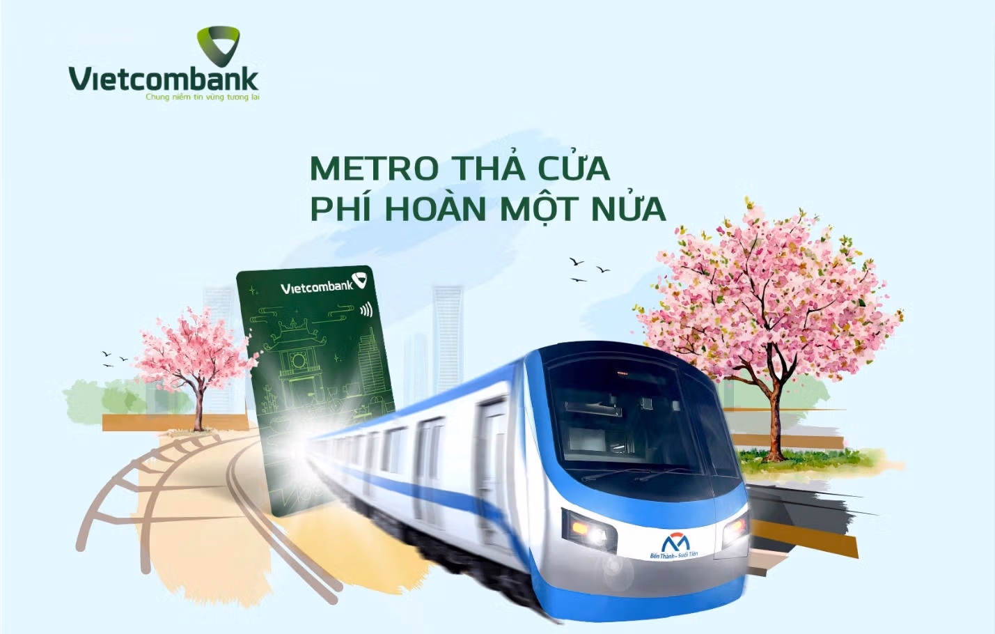 Để khuyến khích người dùng làm quen với phương thức này, Vietcombank triển khai chương trình hoàn tiền khi thanh toán vé metro bằng thẻ Vietcombank Visa. Những ưu đãi như vậy được xem như một cách để người dân trải nghiệm thanh toán không tiền mặt ngay trong các hoạt động đi lại hằng ngày.