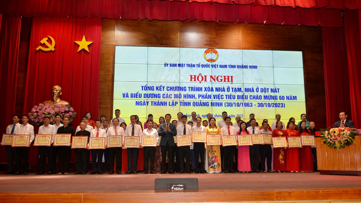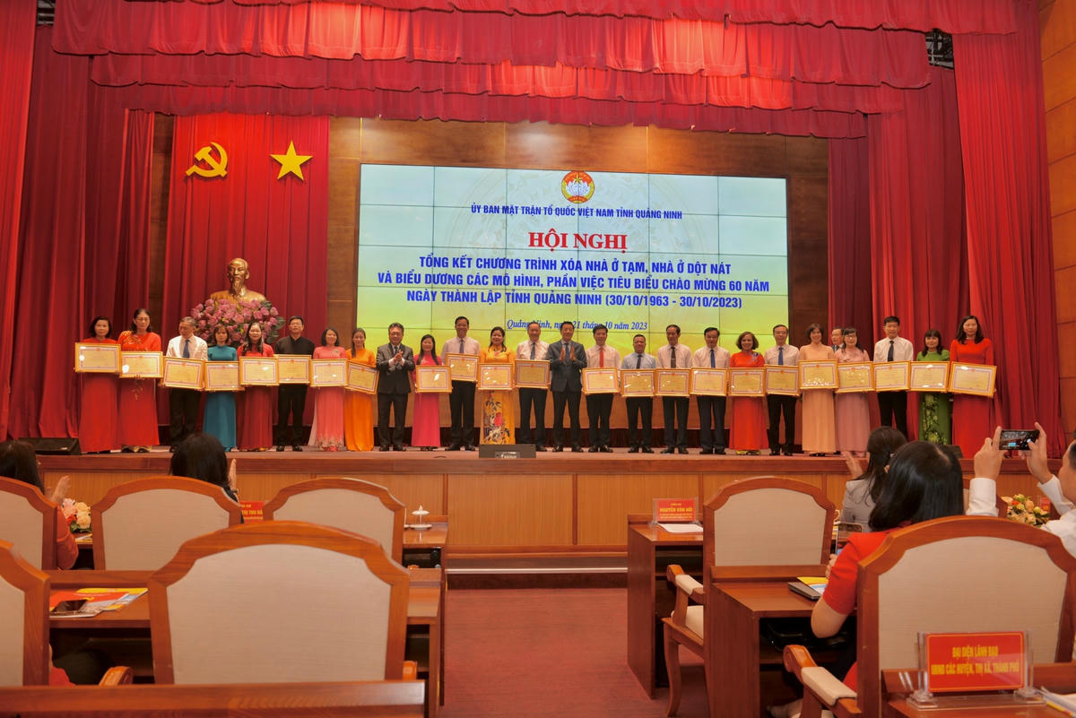 Bên cạnh việc đánh giá những kết quả đã đạt được trong triển khai chương trình xóa nhà ở tạm, nhà ở dột nát, Hội nghị còn đặc biệt biểu dương 55 mô hình, phần việc tiêu biểu của MTTQ các cấp trong thực hiện cuộc vận động “Toàn dân đoàn kết xây dựng nông thôn mới, đô thị văn minh” lập thành tích chào mừng kỷ niệm 60 năm Ngày thành lập tỉnh Quảng Ninh.