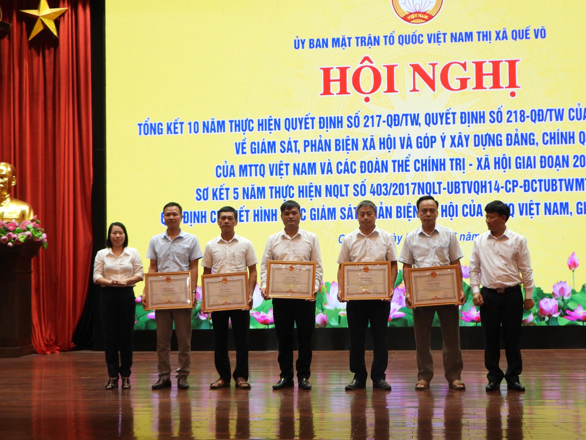 Theo MTTQ Thị xã Quế Võ, sau 5 năm thực hiện Nghị quyết liên tịch số 403, vai trò của MTTQ các cấp được phát huy, chất lượng giám sát, phản biện xã hội được nâng lên và ngày càng đi vào chiều sâu.