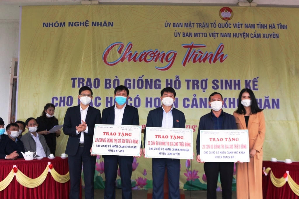 Dưới sự kết nối của Ủy ban MTTQ Việt Nam tỉnh Hà Tĩnh, Công ty TNHH Doanh nghiệp Xã hội Nghệ nhân và Nhóm Nghệ nhân đã xây dựng chương trình trao bò giống, hỗ trợ sinh kế cho các hộ có hoàn cảnh khó khăn.