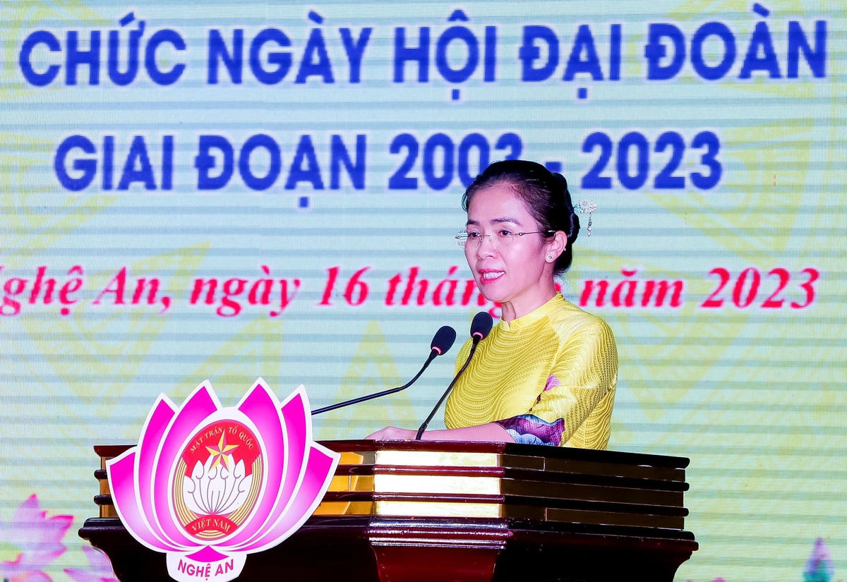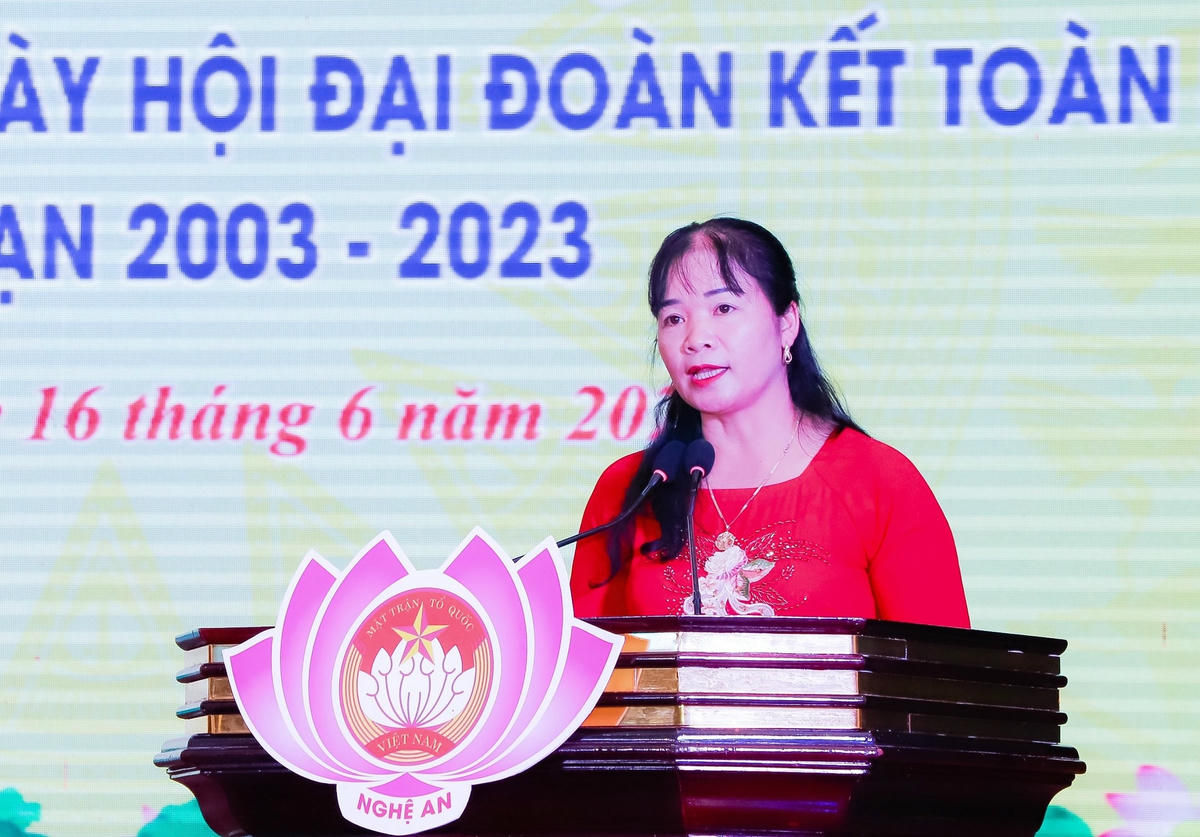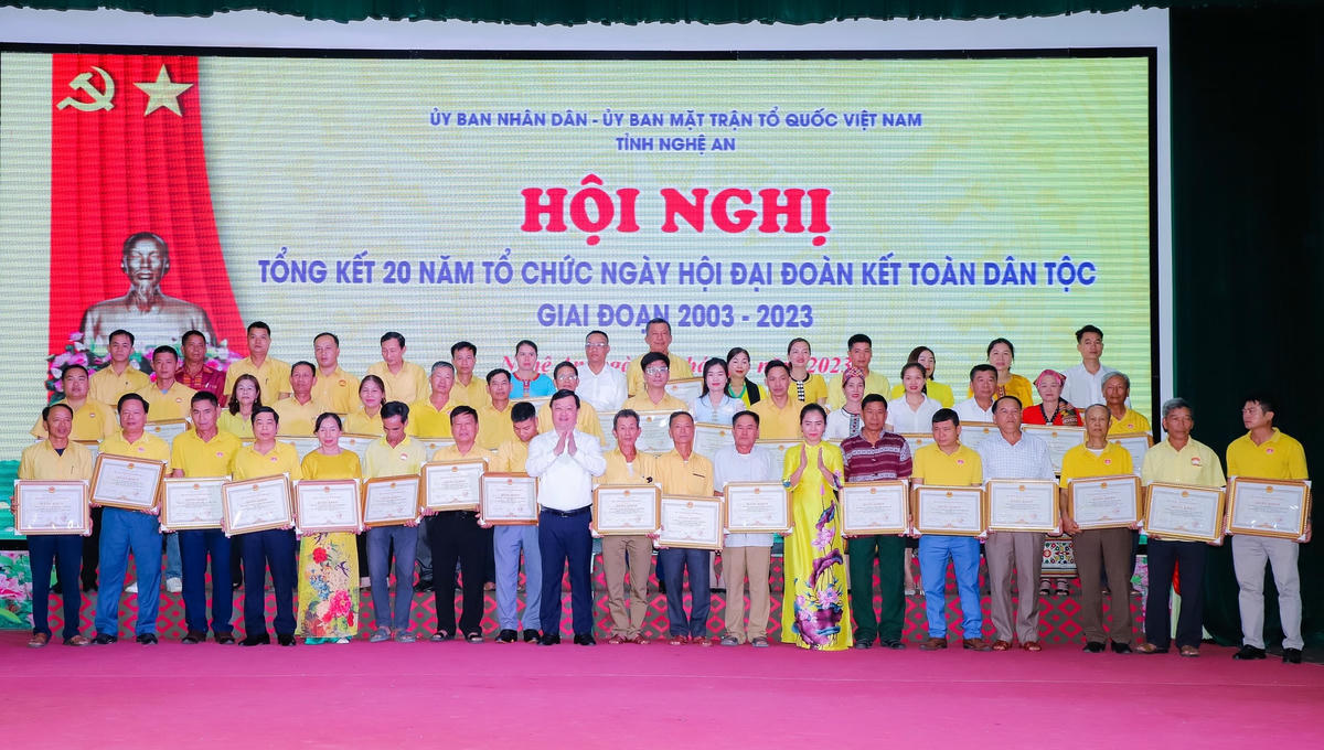 Tại Nghệ An, qua 20 năm tổ chức Ngày hội Đại đoàn kết toàn dân tộc giai đoạn 2003-2023 đã đạt được nhiều kết quả quan trọng, qua đó góp phần củng cố và phát huy sức mạnh khối đại đoàn kết toàn dân tộc; giáo dục truyền thống yêu nước; tăng cường đồng thuận xã hội, xây dựng và phát triển quê hương, đất nước.