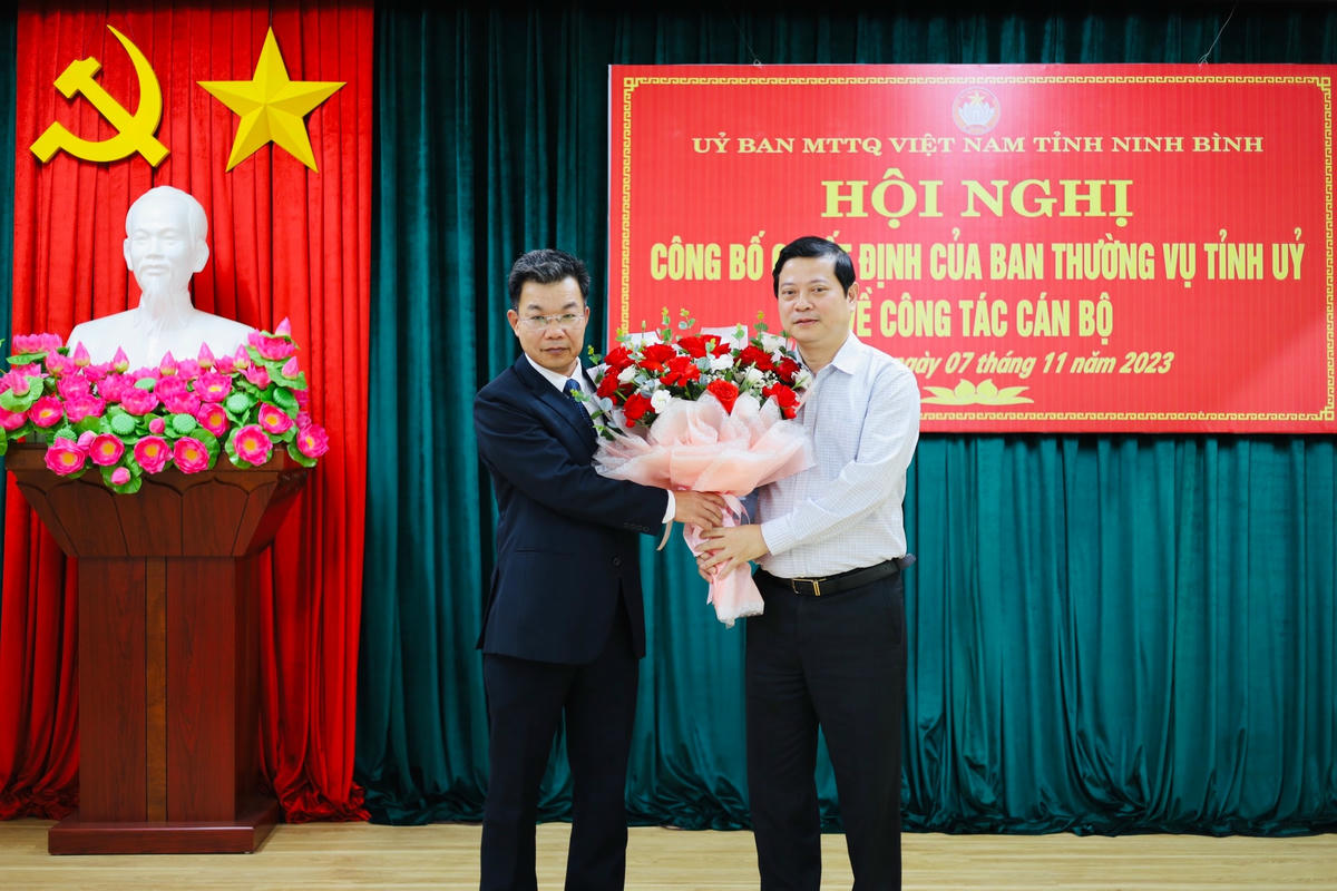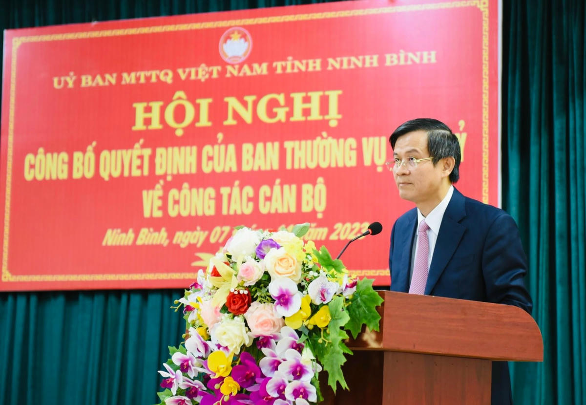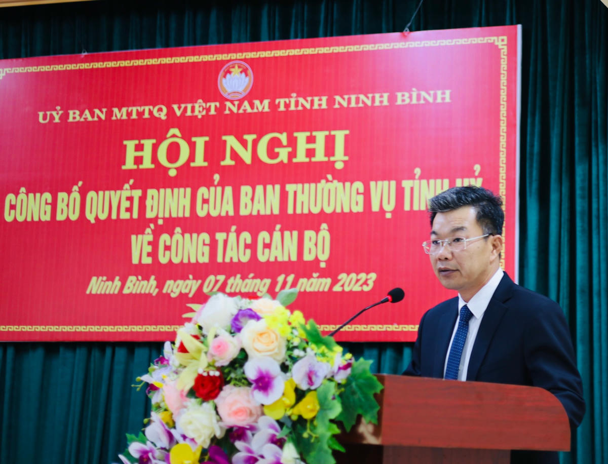 Tại hội nghị, đại diện Ban Tổ chức Tỉnh ủy đã công bố quyết định về việc điều động ông Nguyễn Hoàng Hà, Tỉnh ủy viên, Phó Chủ tịch HĐND tỉnh giữ chức Chủ tịch Ủy ban MTTQ tỉnh nhiệm kỳ 2019-2024, chỉ định giữ chức Bí thư Đảng đoàn Ủy ban MTTQ tỉnh Ninh Bình từ ngày 7/11.