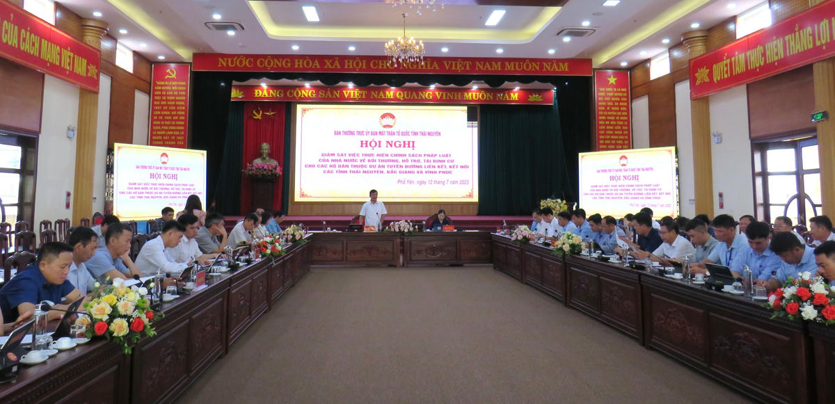 Ủy ban MTTQ tỉnh Thái Nguyên vừa tổ chức giám sát việc thực hiện chính sách pháp luật của Nhà nước về bồi thường, hỗ trợ, tái định cư cho các hộ dân thuộc dự Dự án tuyến đường liên kết, kết nối các tỉnh Thái Nguyên, Bắc Giang và Vĩnh Phúc... tại huyện Đại Từ và thành phố Phổ Yên.