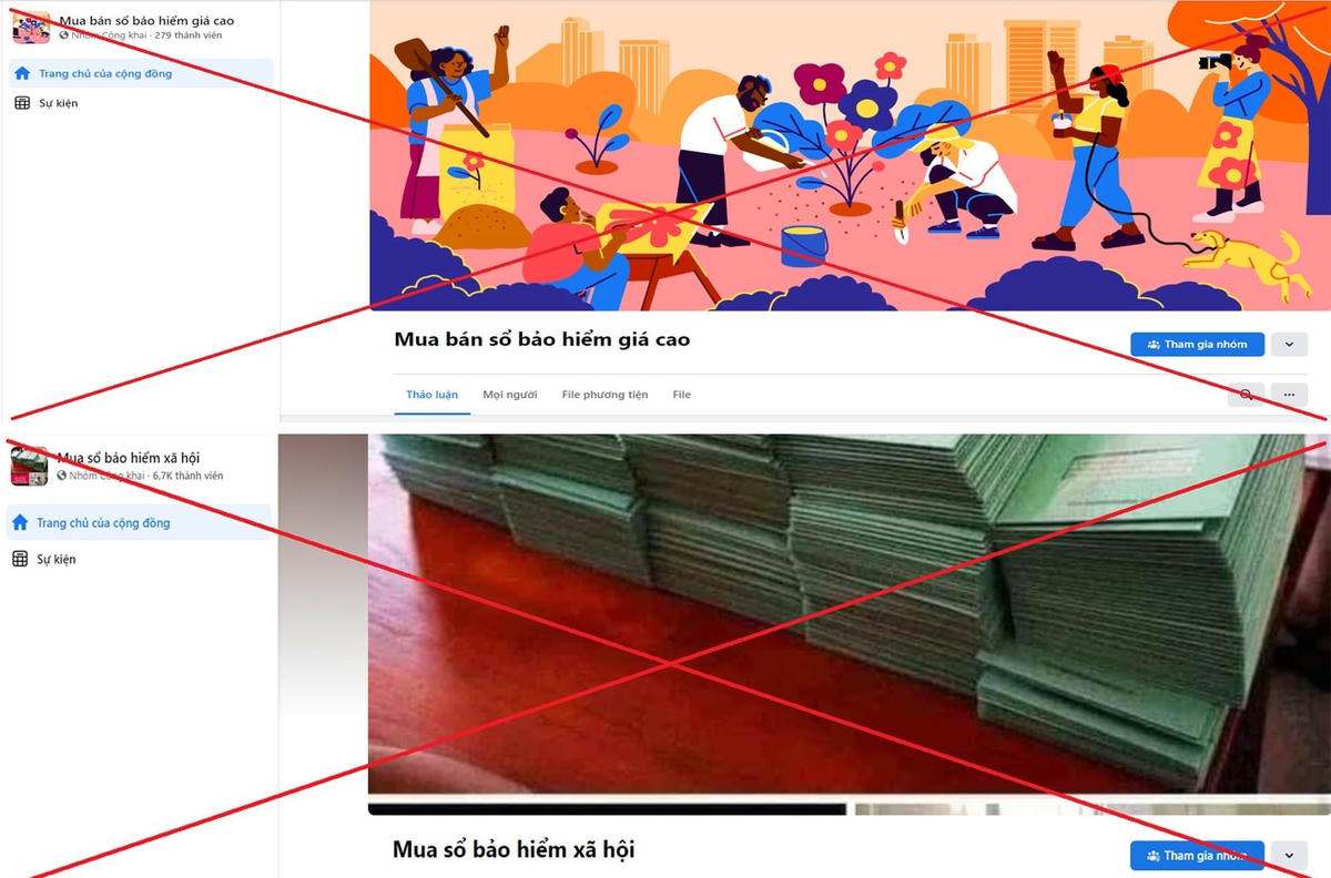 Qua rà soát sơ bộ trên mạng xã hội Facebook và sử dụng công cụ tìm kiếm Google với từ khóa “cầm, thanh lý sổ BHXH” đã cho thấy nhiều kết quả về các hội, nhóm này. Đơn cử như: nhóm "Mua và cầm sổ bảo hiểm xã hội" thu hút hơn 15.000 thành viên; nhóm "Cần bán, thanh lý sổ bảo hiểm xã hội" có 4.000 người... Người mua đăng số điện thoại kèm nội dung "nhận tất tần tật sổ lỗi, sổ trùng, sổ nợ bảo hiểm, sai tên, nghỉ ngang, chưa chốt gộp". Điều kiện chỉ cần sổ đóng trên 3 năm, có căn cước gắn chip, không cần cọc, không cần phí và sau 15 phút giao dịch người bán nhận được tiền.