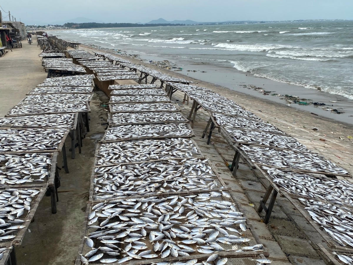 Nhưng không chỉ có các vựa thu mua, bán cho những công ty xuất khẩu mà tại các làng ven biển, ngư dân làm khô cá chỉ vàng nhỏ lẻ cũng rất nhiều. Với lợi thế nhiều, giá rẻ và dễ làm, dễ bảo quản để vận chuyển, gửi đi nơi khác tiêu thụ, cá chỉ vàng đang đem lại nguồn thu nhập lớn cho người dân ven biển. “Cả tháng nay vợ chồng tôi chỉ làm khô cá chỉ vàng rồi gửi cho đứa em út ở quận Gò Vấp (TPHCM) tiêu thụ. Nghe nói nó bỏ mối cho mấy chỗ cửa hàng tiện ích. Cá chỉ ở vùng Tuy Phong này là ngon nhất. Cá tươi dưới ghe đưa lên mình cứ thế phơi. Trời nắng thì 2 ngày là được. Cá vừa dẻo, vừa dai mà cũng thơm lắm, không bị mùi như nhiều nơi khác, lại rẻ nữa. Cá chỉ này khô có thể để cả năm ăn vẫn chất lượng”, anh Nguyễn Văn Hoài, một ngư dân ở thị trấn Phan Rí Cửa, huyện Tuy Phong (Bình Thuận) chia sẻ. Ngoài vợ chồng anh Hoài, dọc theo con đường ven biển của thị trấn có tới năm chục hộ dân cũng làm nghề phơi cá khô. Suốt thời gian này, hầu hết các giàn chỉ có một loại là cá chỉ vàng.