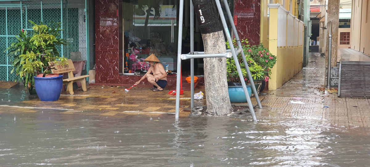Ngập sâu nhất là ở các tuyến đường Trần Phú, Võ Thị Sáu và đường Hòa Bình. Nước ngập tràn vào nhà dân, nhiều người phải tát nước ra hàng giờ nhưng nước rút rất chậm. Một số vị trí ngập nặng hơn 50cm, nhiều phương tiện giao thông bị chết máy trên đường.