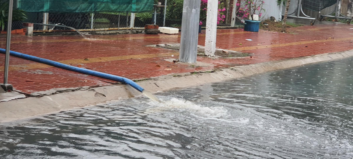 Tại Khu dân cư Thiên Long phường 5 do hạ tầng thấp kém, mặt bằng thấp, đường, hệ thống thoát nước không đầu tư xây dựng khiến cho tình tạng ngập nước ở đây trầm trọng thêm. Nước còn tù đọng từ những cơn mưa trước trưa rút hết thì cơn lớn suốt đêm từ tối đến sáng ngày hôm nay khiến cho khu dân cư này lênh láng nước. Ở một số tuyến đường thấp mực nước ngập sâu tới một mét, có chỗ còn khoảng 50 cm ảnh hưởng lớn đến đến việc đi lại, sinh hoạt của hàng trăm cán bộ, công chức, viên chức và người dân ở đây.