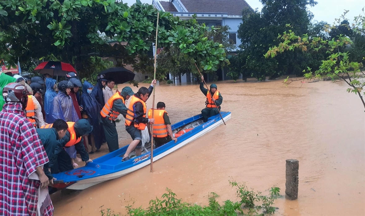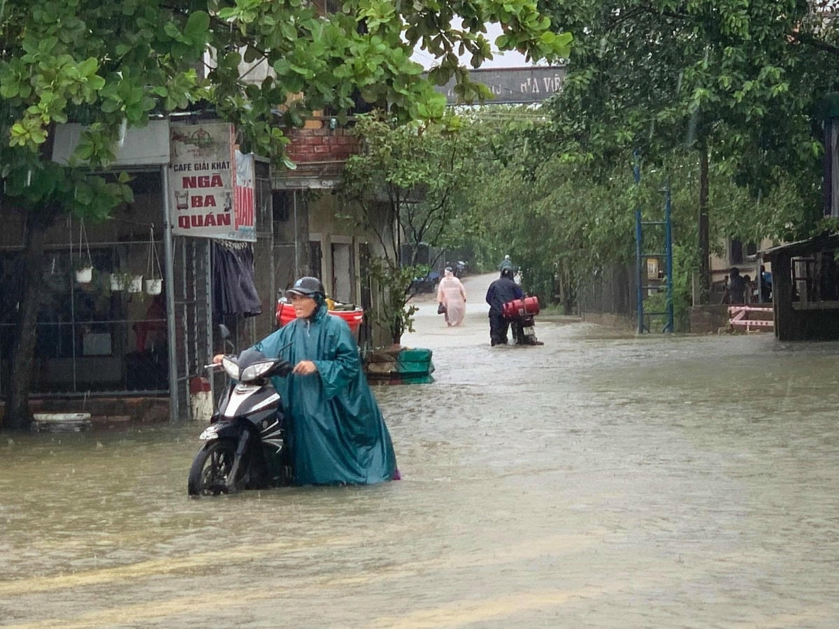 Ngày 10/10, mưa lớn tiếp tục trút xuống các tỉnh miền Trung, từ Hà Tĩnh tới Quảng Ngãi. Lượng mưa lớn tập trung tại Thừa Thiên-Huế, Quảng Nam khiến nước sông khu vực này lên nhanh. Nước lũ tràn vào nhiều khu dân cư, khiến cuộc sống người dân đảo lộn.
