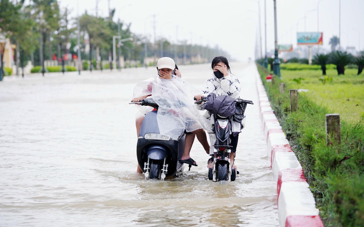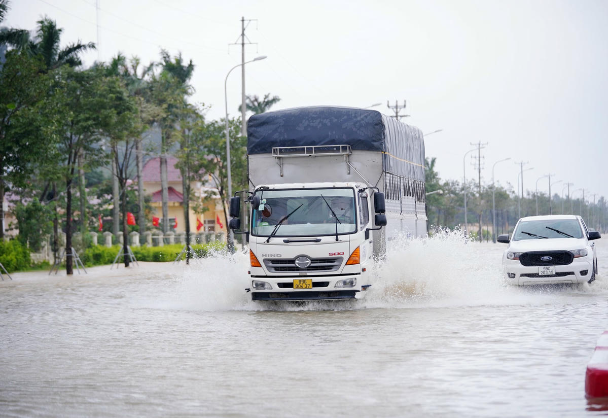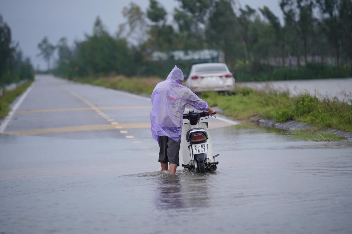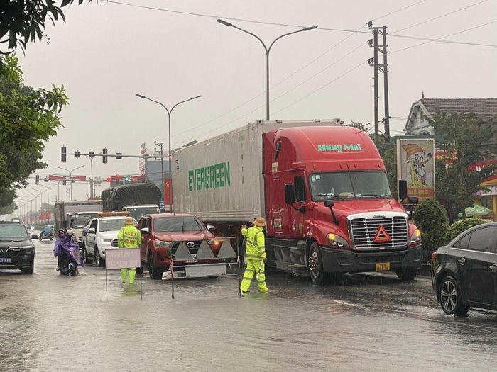 Mưa lớn kéo dài khiến nhiều khu vực trên địa bàn hai huyện Lộc Hà và Can Lộc (Hà Tĩnh) ngập sâu, nhiều tuyến đường bị chia cắt. Đặc biệt, QL1 đoạn thị trấn Nghèn (huyện Can Lộc) bị ngập khiến nhiều phương tiện di chuyển khó khăn, giao thông ách tắc.