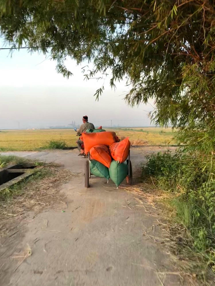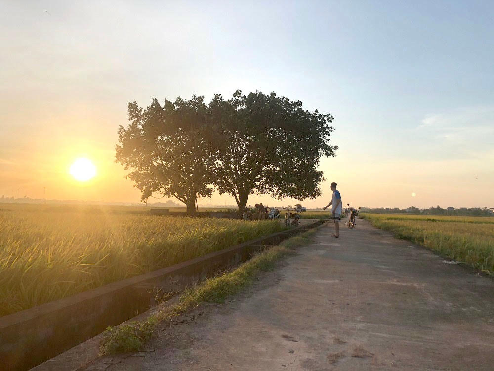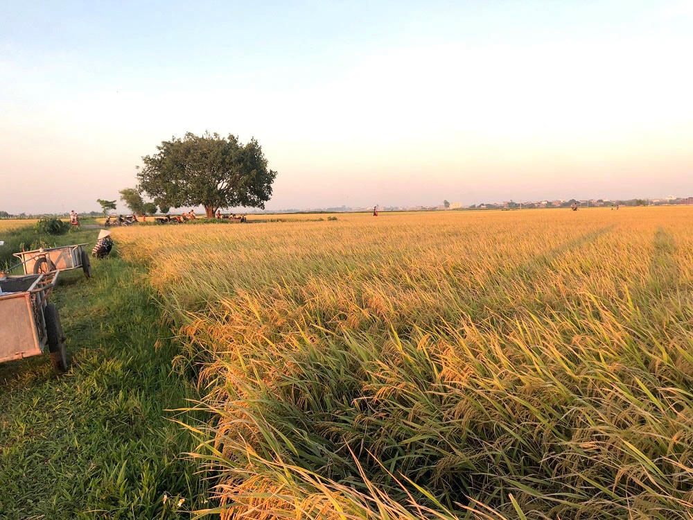 Với những cánh đồng trải dài thẳng cánh cò bay, dưới ánh nắng của buổi xế chiều mang theo những cơn gió đồng mát rượi gợi cho con người ta nhớ về cảnh ngày mùa của tuổi thơ. Hay những buổi sớm tinh mơ đẹp đến ngẩn ngơ trong khung cảnh sương mù bao trùm khắp cánh đồng rộng lớn. Mùa lúa chín, những cánh đồng quê rộng lớn, trải dài hút tầm mắt. Có dịp chiêm ngưỡng đồng lúa ở Thái Bình, với nhiều người hẳn sẽ không khỏi bâng khuâng, xao xuyến trước nét đẹp thôn quê. Cánh đồng lúa tại Kiến Xương, những người nông dân nơi đây đang nhanh tay thu hoạch, tiếng cười nói, tiếng máy gặt rộn ràng khắp đồng quê đang vào mùa. Thay vì phải gặt tay như ngày trước, những cánh đồng này được thu hoạch bằng máy, tiện lợi hơn rất nhiều, bà con nông dân cũng đỡ vất vả hơn. Giá gặt bằng máy sẽ dao động từ 120 - 150 nghìn đồng/sào, tùy vào từng nơi và địa hình. Mọi người đang chờ máy gặt đóng bao, sau đó vận chuyển lên xe mang về nhà. Nhờ có máy gặt, người nông dân chỉ cần chở thóc về mà không phải qua công đoạn tuốt lúa. Còn tại huyện Vũ Thư, do khó khăn về mặt địa hình nên một số bà con phải gặt bằng tay - cách gặt truyền thống của người dân Việt Nam. Người dân xếp gọn bó lúa lên đường và đợi máy đến tuốt lúa. Chia sẻ với phóng viên, chú N.V.K. (huyện Kiến Xương) không giấu nổi niềm vui hiện rõ trên khuôn mặt: “Năm nay lúa ít sâu bệnh, cũng coi như là được mùa, tôi và bà con rất phấn khởi”. Có lẽ đối với những người nông dân, cả năm làm lụng vất vả thì đây chính là lúc mà họ được gặt hái thành quả của mình. Sau khi kéo thóc về nhà, người nông dân tiếp tục công đoạn phơi thóc và tách hạt lép. Chiều muộn, khi nắng đã tắt dần, mọi người tập trung thu gom thóc lại, khi thóc đủ nắng và già hạt có thể đóng bao cất đi. Hình ảnh bình yên mà rất đỗi quen thuộc, gốc đa đầu làng luôn là điểm dừng chân, chỗ nghỉ cho người dân sau mỗi ngày đi làm đồng vất vả, cũng là nơi lũ trẻ trong làng thường hay tụ tập, nô đùa thỏa thích,...