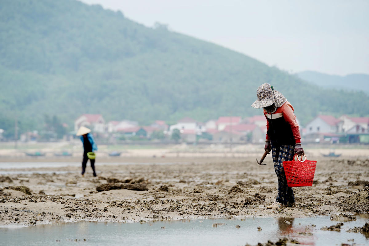 Có mặt tại chân cầu Cửa Nhượng (xã Cẩm Lĩnh, huyện Cẩm Xuyên, tỉnh Hà Tĩnh) vào một buổi sáng giữa tháng 7, thời điểm này cũng là lúc thủy triều vừa rút xuống. Tại đây, nhiều người dân tại 2 xã Cẩm Nhượng và Cẩm Lĩnh đang xách vài món đồ lỉnh kỉnh như dùi sắt, búa, rổ rá… để bắt đầu công việc mưu sinh của mình “đẽo đá đục hàu”.