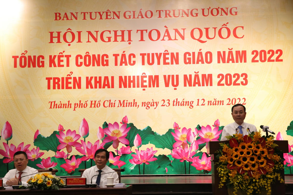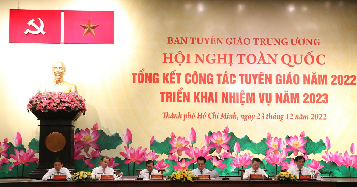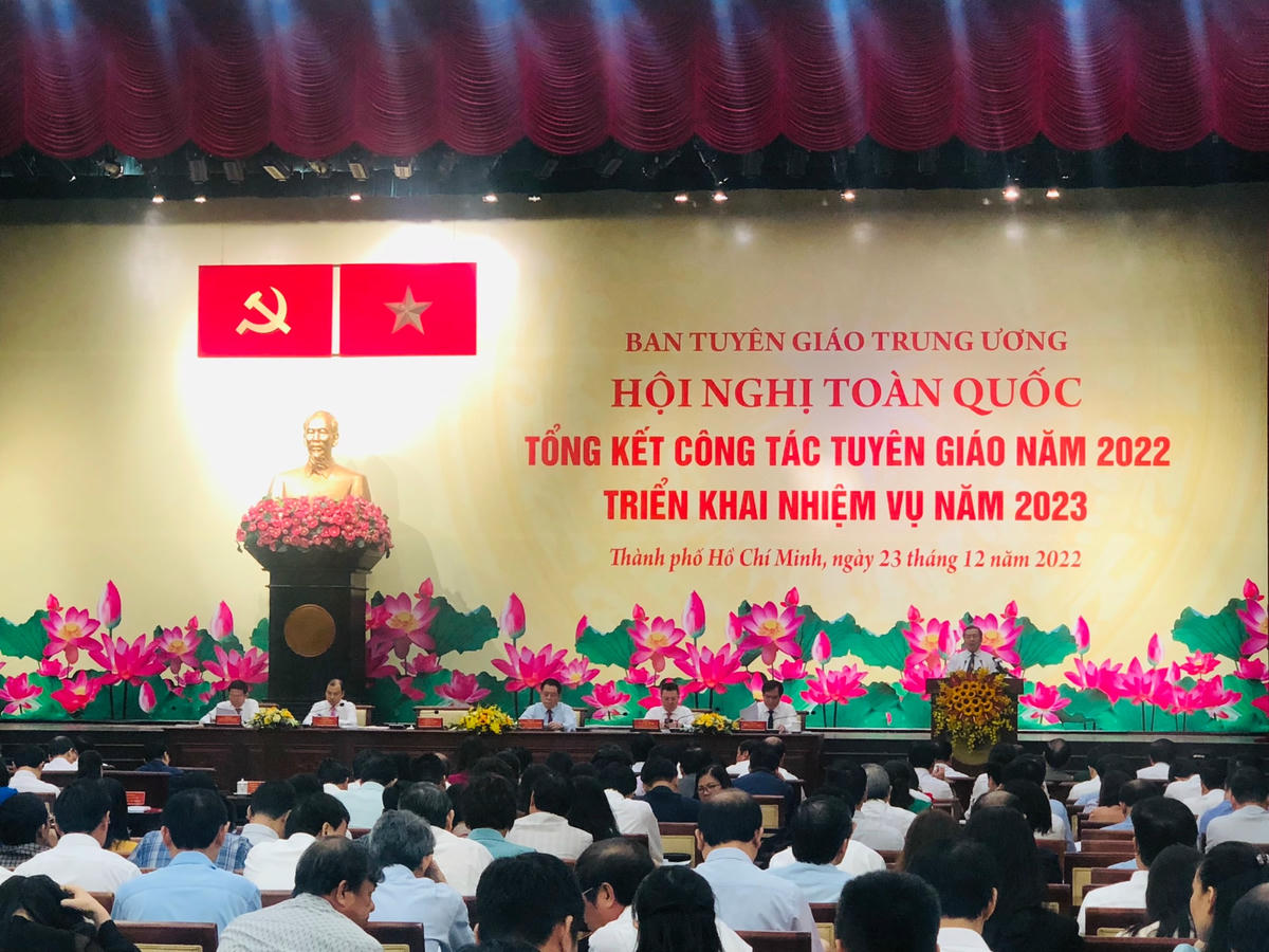 Ngày 23/12, tại Hội trường Thành ủy TP HCM, Ban Tuyên giáo Trung ương tổ chức Hội nghị toàn quốc tổng kết công tác tuyên giáo năm 2022 và triển khai nhiệm vụ năm 2023.