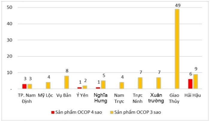 Trong số các đại phương ở Nam Định, tính đến nay, huyện Giao Thủy là địa phương có số lượng sản phẩm được đánh giá, xếp hạng OCOP nhiều nhất, với 49 sản phẩm được UBND tỉnh đánh giá, xếp hạng, mang đặc trưng riêng vùng miền. Ngoài sản phẩm du lịch sinh thái cộng đồng xã Giao Xuân, hầu hết các sản phẩm OCOP của huyện có nguyên liệu từ nông nghiệp, diêm nghiệp, ngư nghiệp, do chính nông dân, ngư dân, diêm dân, các Hợp tác xã, doanh nghiệp ở địa phương làm ra. Trong đó phải kể đến các sản phẩm như Mật ong sú vẹt Vườn quốc gia Xuân Thủy; nước mắm thủ công truyền thống Sa Châu, nem nắm, gạo Đài thơm 8, Nếp cái hoa vàng, dưa lê siêu ngọt, dưa hấu trồng theo công nghệ hữu cơ, sản phẩm muối sạch, muối tinh, muối bột canh, củ gai sấy khô, nấm linh chi, mộc nhĩ, nấm sò trắng, nấm sò nâu, tép moi sấy khô, ngũ cốc lợi sữa, ngũ cốc dinh dưỡng, ngũ cốc mẹ bầu, ruốc tôm, tôm he, tôm sú sấy, cá thu, cá vược…