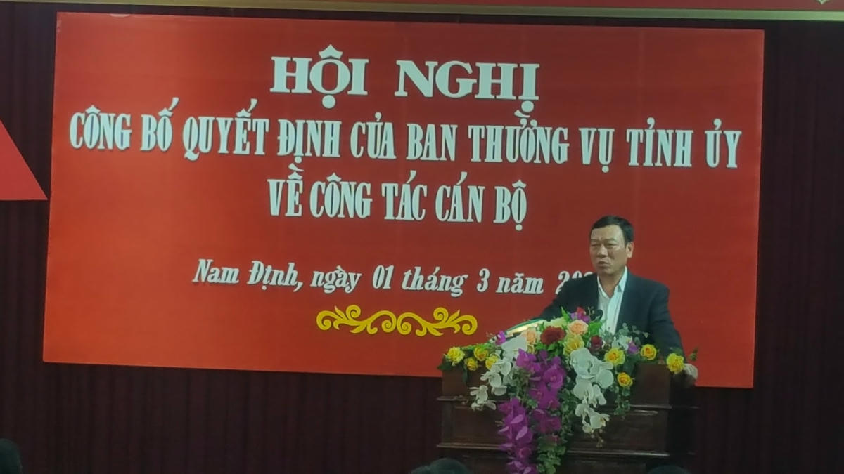 Chiều nay, 1/3, tại Trụ sở Tỉnh ủy, Tỉnh ủy Nam Định tổ chức hội nghị công bố Quyết định của Ban Thường vụ Tỉnh ủy về công tác cán bộ.
