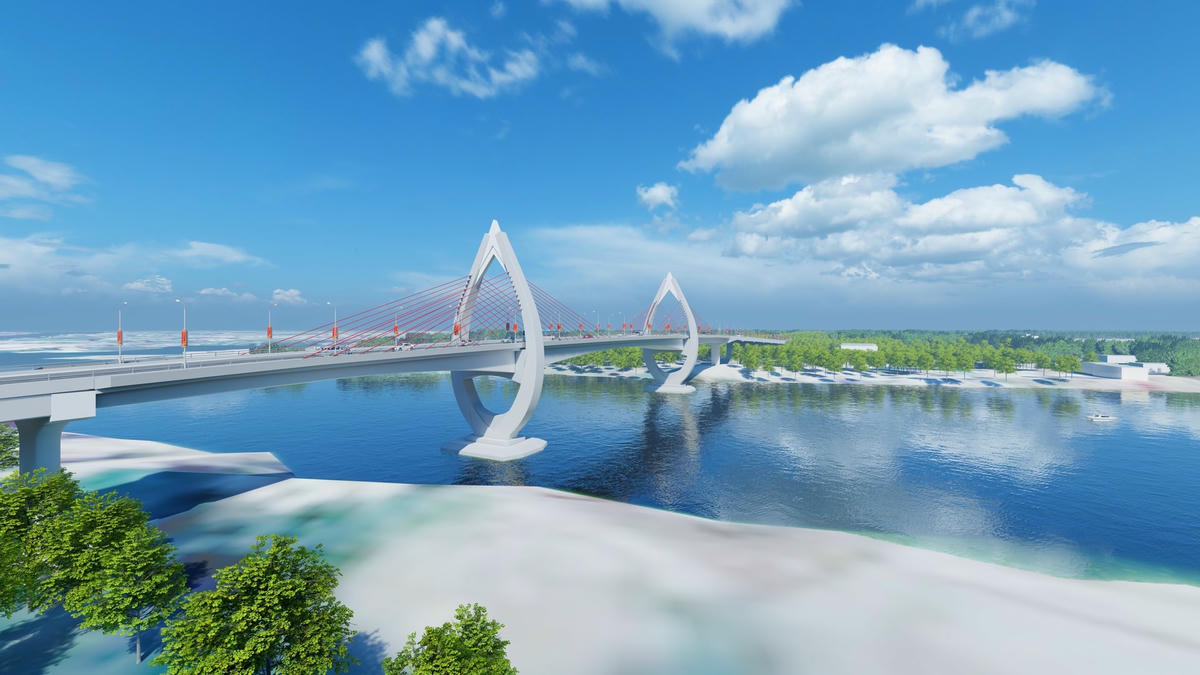 Thông tin tại buổi lễ cho biết, cầu có thiết kế cầu dây văng, 16 nhịp, có tổng chiều dài 1,6 km, trong đó phần vượt sông dài 0,8 km, mặt cắt ngang 20,5 m; phần đường dẫn hai đầu cầu dài 0,8 km, theo phương án thiết kế của Công ty cổ phần Tư vấn xây dựng công trình giao thông 2.