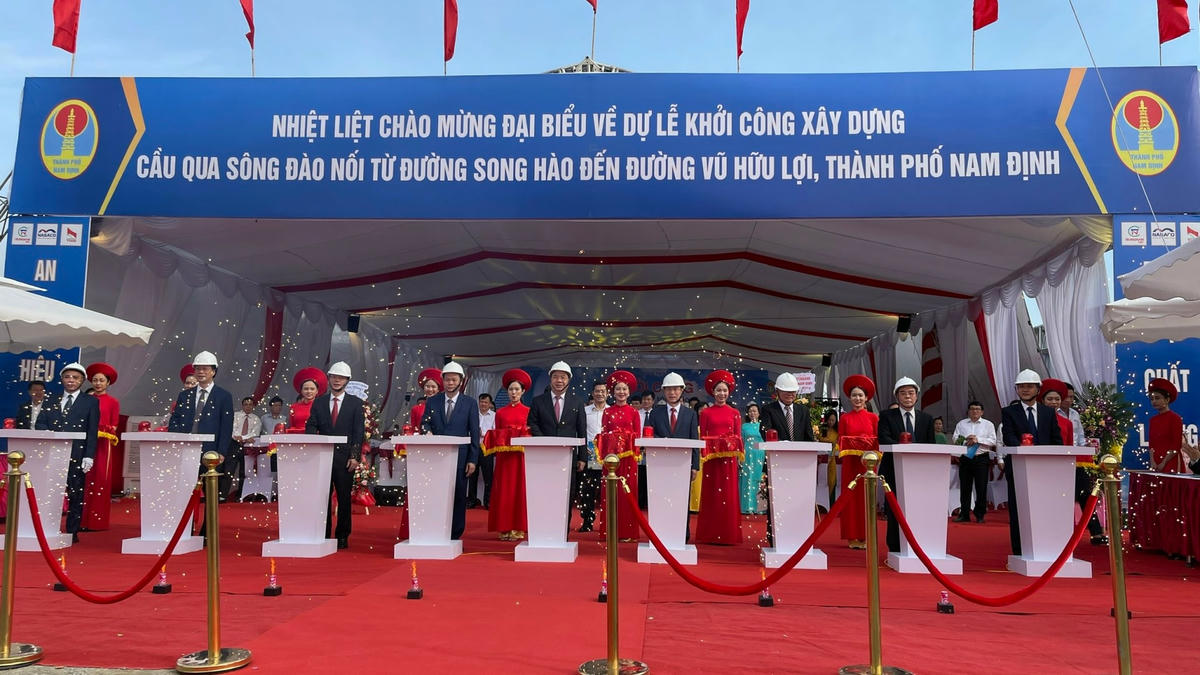 Sáng nay (15/10), UBND TP Nam Định (Nam Định) tổ chức lễ khởi công xây dựng cầu Dự án xây dựng cầu qua sông Đào, nối từ đường Song Hào (phường Trần Quang Khải) sang đường Vũ Hữu Lợi (phường Cửa Nam).