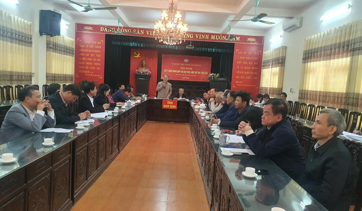 Ngày 28/2, Ủy ban MTTQ Việt Nam tỉnh Nam Định tổ chức hội nghị lấy ý kiến đóng góp vào Dự thảo Luật Đất đai sửa đổi với sự tham dự đóng góp ý kiến của đại diện nhiều tổ chức thành viên cũng như thành viên các Hội đồng tư vấn của Ủy ban MTTQ tỉnh.
