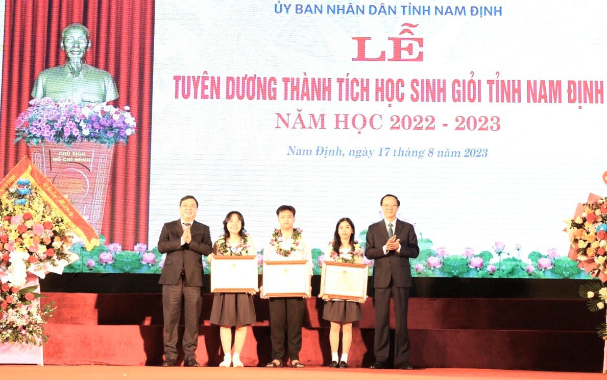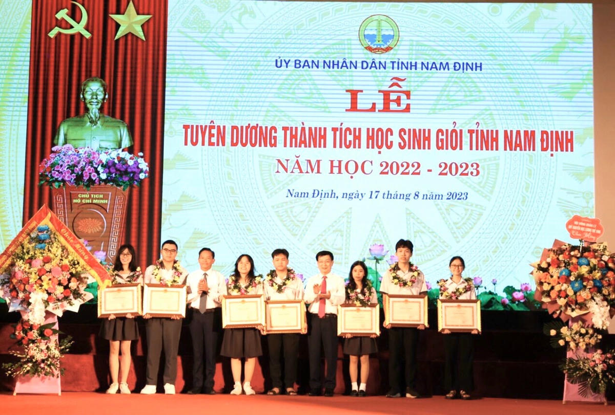 Ngày 17/8, trước thềm năm học mới, UBND tỉnh Nam Định tổ chức lễ tuyên dương thành tích học sinh giỏi của tỉnh năm học 2022-2023 với sự tham dự của lãnh đạo Bộ GDĐT, tập thể lãnh đạo tỉnh.