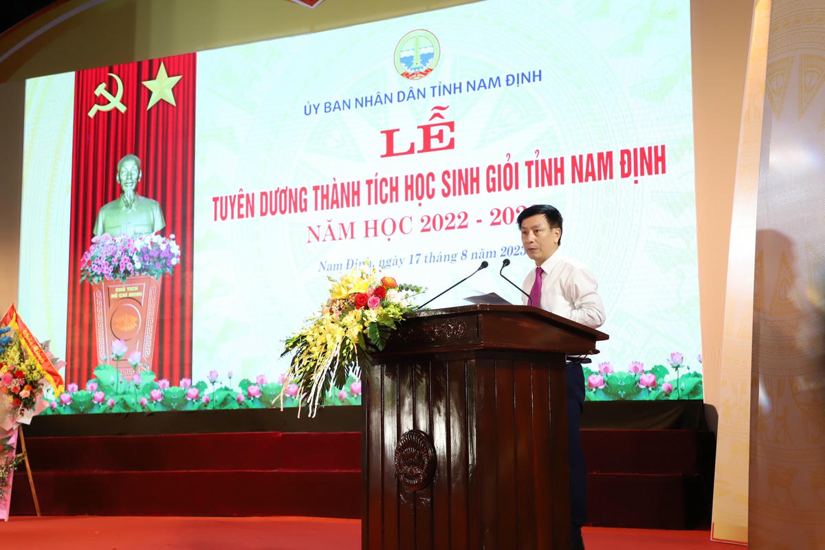 Phát biểu tại buổi lễ, Chủ tịch UBND tỉnh Nam Định Phạm Đình Nghị ghi nhận, đánh giá cao sự nỗ lực, những kết quả quan trọng ngành GDĐT tỉnh đạt được trong năm học 2022-2023; biểu dương những thành tích của tất cả các em học sinh đã đạt được trong các kỳ thi; biểu dương các thầy, cô giáo và tập thể cán bộ ngành GDĐT tỉnh đã hết lòng vì học sinh; thêm rằng: "Trong số các em học sinh giỏi tiêu biểu có mặt ngày hôm nay, tôi thật sự xúc động và đặc biệt biểu dương, khen ngợi những em học sinh có hoàn cảnh khó khăn, bằng nghị lực, ý chí và quyết tâm cao, đã vượt lên hoàn cảnh, đạt thành tích xuất sắc trong học tập và rèn luyện”.