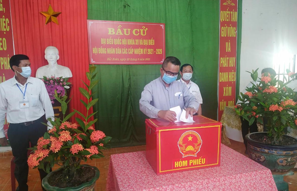 Trong khi đó, từ sáng sớm cụ Phạm Thị Hào (hơn 90 tuổi) ở thị trấn Yên Định thuộc huyện ven biển Hải Hậu đã được con cháu đưa tới điểm bầu cử. Như mọi cử tri khác, cụ cũng thực hiện đầy đủ các quy định phòng, chống dịch; tìm hiểu về các cử tri trước khi bỏ phiếu.