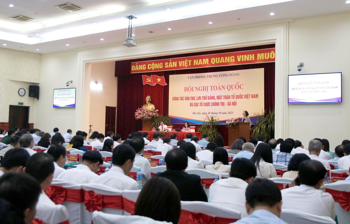 Ngày 26/10, tại Hà Nội, Văn phòng Trung ương Đảng tổ chức Hội nghị toàn quốc công tác văn thư, lưu trữ đảng, MTTQ Việt Nam và các tổ chức chính trị - xã hội năm 2023. Ủy viên Bộ Chính trị, Thường trực Ban Bí thư, Trưởng Ban Tổ chức Trung ương Trương Thị Mai dự và phát biểu chỉ đạo tại Hội nghị.
