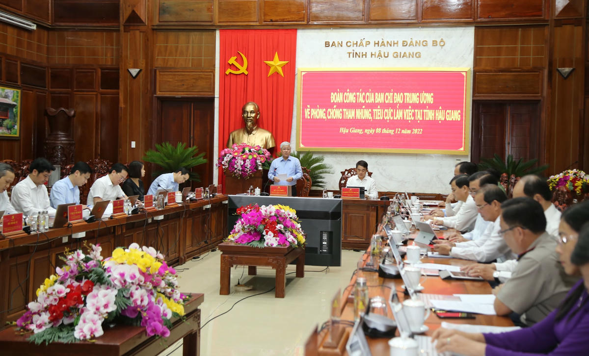 Báo cáo với đoàn làm việc, ông Nghiêm Xuân Thành, Bí thư Tỉnh ủy, Trưởng Ban Chỉ đạo về phòng, chống tham nhũng, tiêu cực tỉnh Hậu Giang cho biết: Tỉnh ủy, Ban Thường vụ Tỉnh ủy Hậu Giang luôn xác định công tác PCTN, tiêu cực, lãng phí là một trong những nhiệm vụ rất quan trọng. Tập trung lãnh đạo, chỉ đạo các cấp, các ngành tăng cường công tác tuyên truyền, phổ biến, giáo dục chính trị, tư tưởng, pháp luật liên quan đến công tác PCTN cho đội ngũ cán bộ, đảng viên, công chức, viên chức. Ban hành đồng bộ các văn bản lãnh đạo, chỉ đạo công tác PCTN, tiêu cực; đồng thời, thường xuyên theo dõi, kiểm tra, đôn đốc việc triển khai thực hiện; từ đó, tạo được sự chuyển biến trong nhận thức, hành động của các cấp ủy đảng, chính quyền, Mặt trận Tổ quốc, các đoàn thể và lan tỏa mạnh mẽ trong quần chúng nhân dân; tích cực tham gia, thực hiện tốt các chủ trương của Đảng, chính sách, pháp luật của Nhà nước về công tác PCTN, tiêu cực, lãng phí.