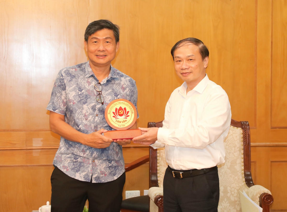 Chiều 4/7, trong khuôn khổ chuyến thăm và làm việc tại Việt Nam, Đoàn đại biểu cấp cao Hiệp hội Nhân dân Singapore do ông Jimmy Toh Yong Leng, Giám đốc điều hành Hiệp hội Nhân dân Singapore làm Trưởng đoàn đã đến chào xã giao lãnh đạo Ban Dân vận Trung ương. Ông Phạm Tất Thắng, Ủy viên Trung ương Đảng, Phó Trưởng ban Thường trực Ban Dân vận Trung ương thân mật tiếp đoàn.