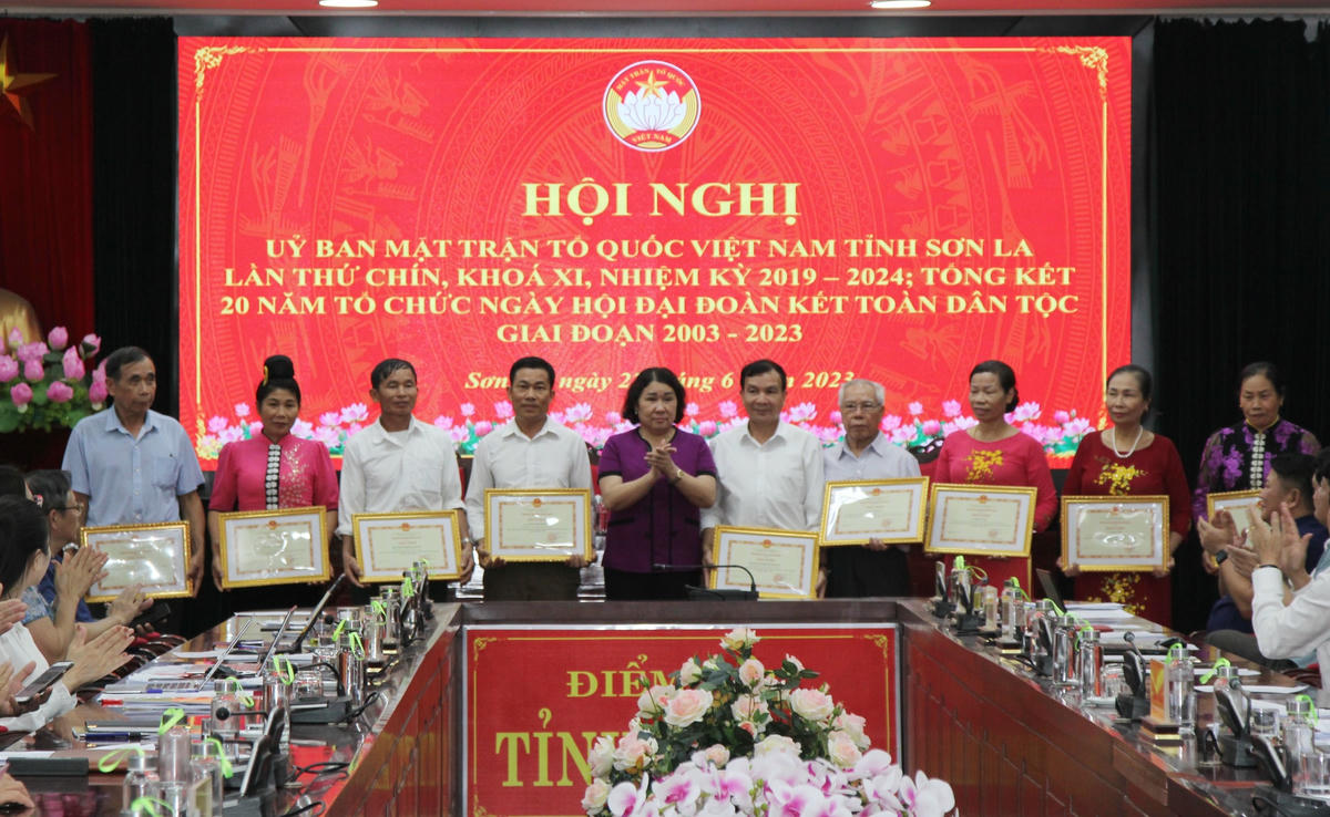 Tại Hội nghị, UBND tỉnh Sơn La đã tặng bằng khen cho 12 tập thể và 12 cá nhân; Uỷ ban MTTQ tỉnh Sơn La tặng bằng khen cho 12 tập thể, 24 cá nhân có thành tích xuất sắc trong 20 năm tổ chức Ngày hội đại đoàn kết toàn dân tộc.